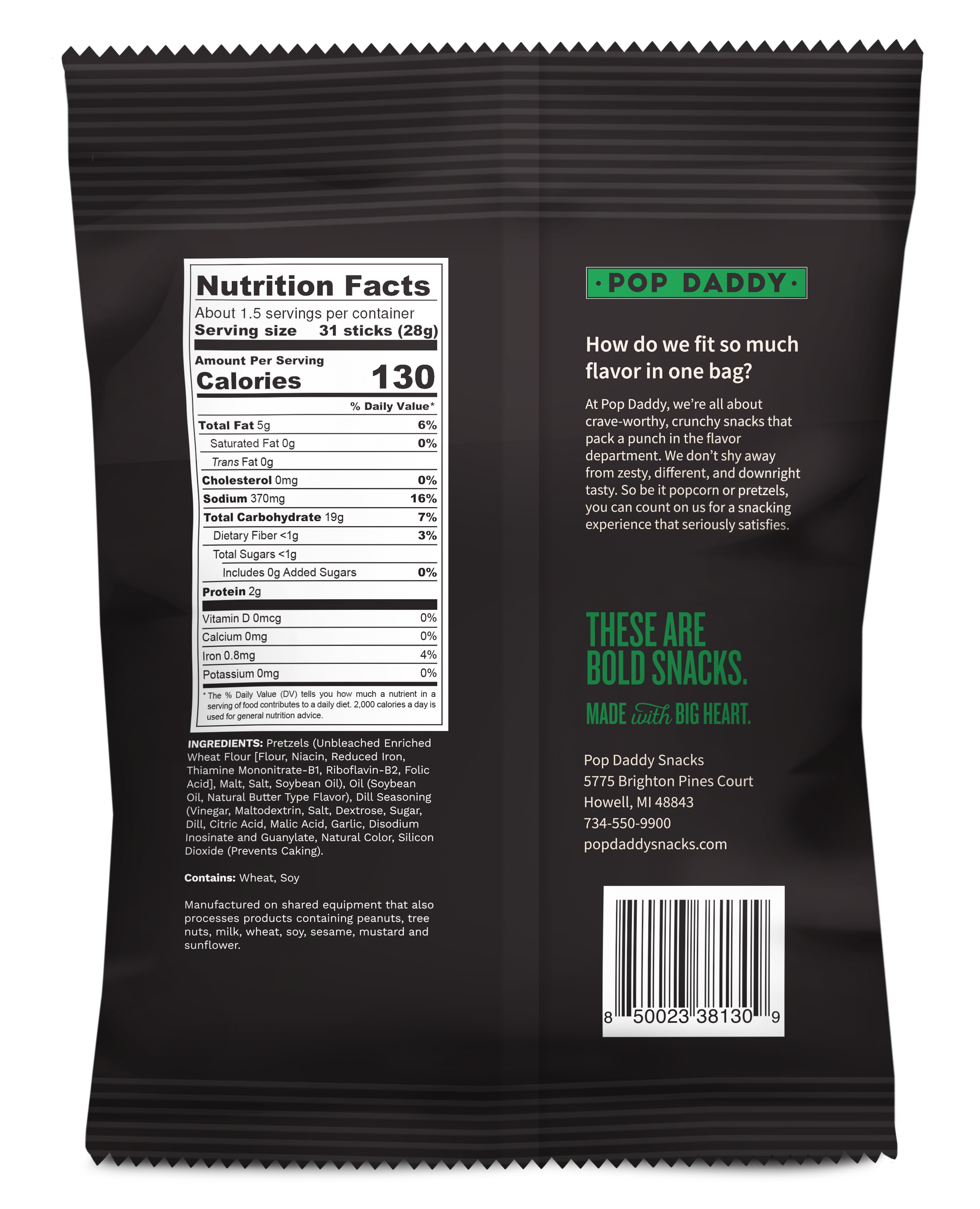 The Mini Pretzel pack includes 48 (1.5 oz) bags of Dill Pickle pretzels.