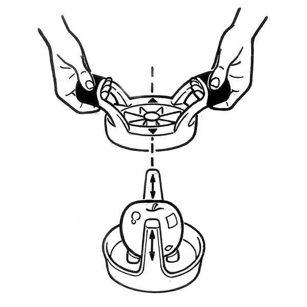 Center fruit on push plate. Line up arrow on slicer with arrow on push plate. Center over core, keep hands away from blades, and push down in one easy motion.