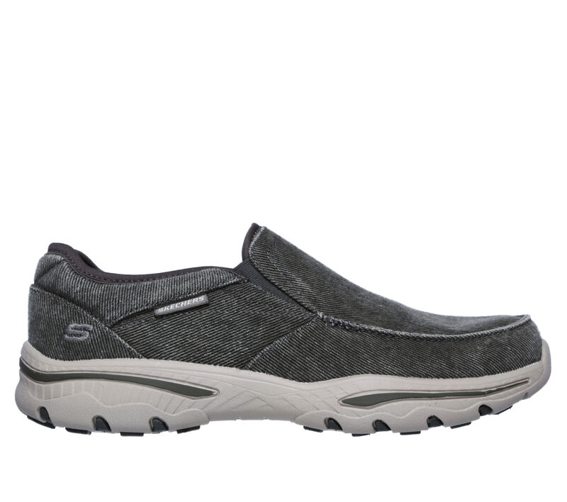 Canvas means comfort and cool, laid-back style in Skechers Relaxed Fit: Creston - Moseco. Soft woven fabric upper in a slip-on casual comfort moc toe loafer with Air-Cooled Memory Foam insole.