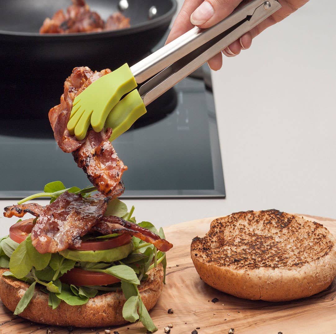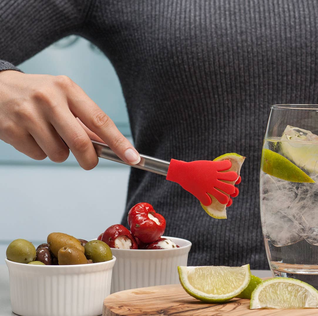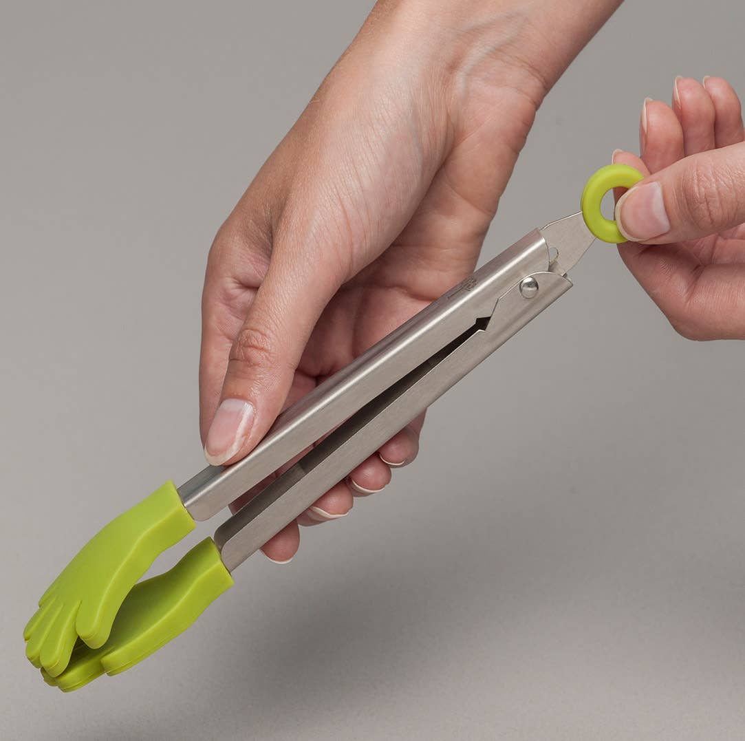 These fun, hand shaped silicone tongs are ideal in the kitchen and great for getting kids involved in cooking. The high quality, brushed stainless steel handles have a unique locking mechanism to keep the arms together when stored.