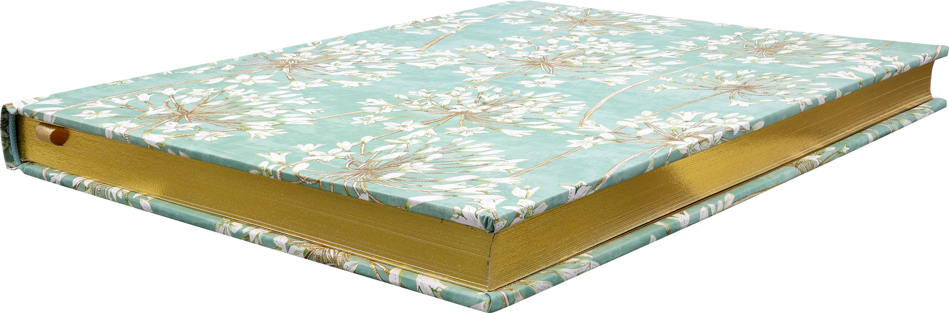 Elegant journal features a display of delicate white Allium Blossoms in full bloom, artfully arranged against a softly textured background. Inside, crisp journaling pages await pen or pencil, whether for personal reflections, sketching, or capturing favorite quotes and poems. Smooth-finish 120 gsm paper is both acid-free and archival, ensuring your words endure. Subtle light gray lines provide gentle guidance as you express your thoughts. A matching satin ribbon bookmark marks your place. Cover design is embossed and embellished with hand-selected touches of shimmering gold foil. Complementary spine treatment and interior endsheets enhance the overall design, creating a harmonious experience. Gilded-gold edging catches the light, adding a touch of elegance with every turn of a page. Substantial hardcover binding ensures durability. Write expansively! Larger-sized journal measures 7-1/4'' wide by 9'