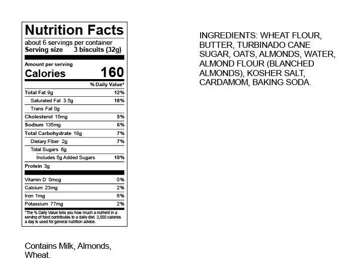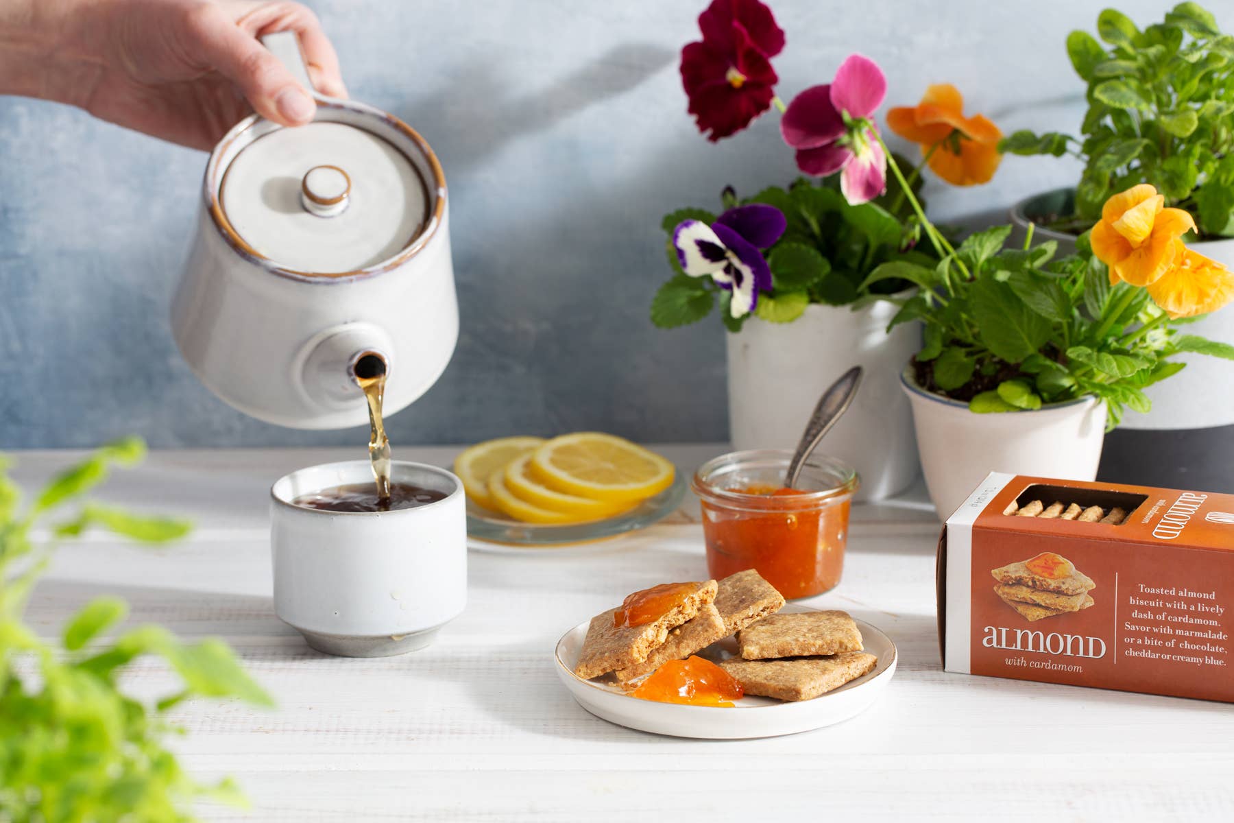 Toasted almond biscuit with a lively dash of cardamom. Savor with marmalade or a bite of chocolate, cheddar or creamy blue.