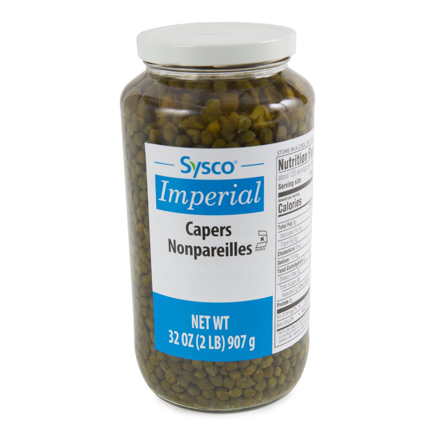 Sysco Imperal capers to be used as a seasoning or garnish to elevate presentation. They are commonly used in Mediterranean cuisine, particularly in seafood dishes such as baked fish and pasta or as a Lox bagel topping