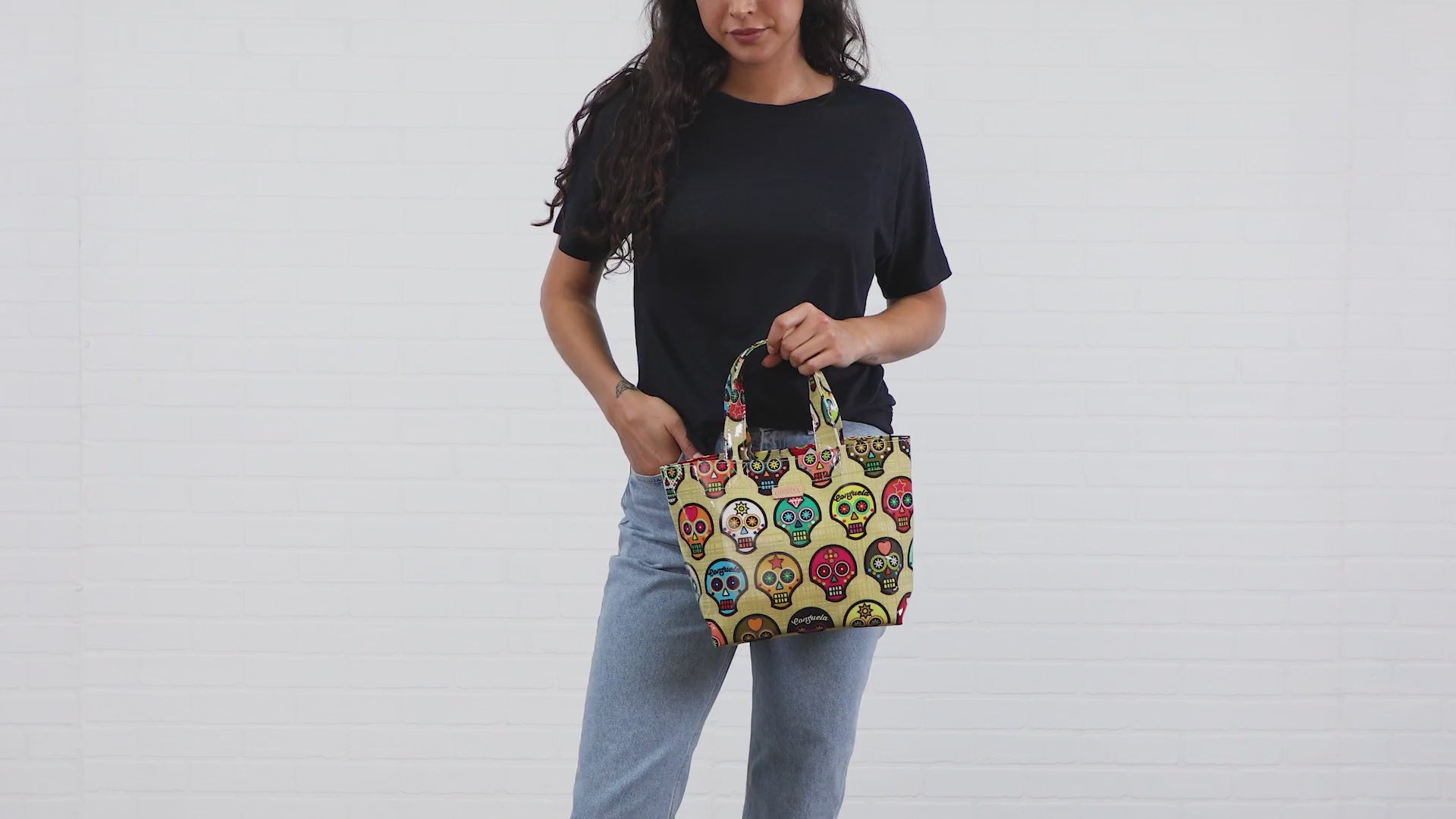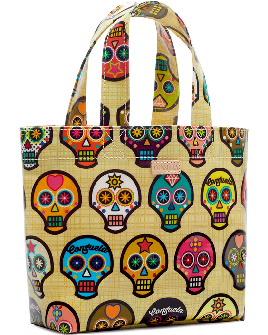 Our Sugar Skulls Mini Bag is perfect for carrying your lunch or giving gifts and folds easily to fit inside your everyday bag. This unlined utility tote in easy-to-clean ConsuelaCloth™ is the smallest of our Grab-n-Go favorites.