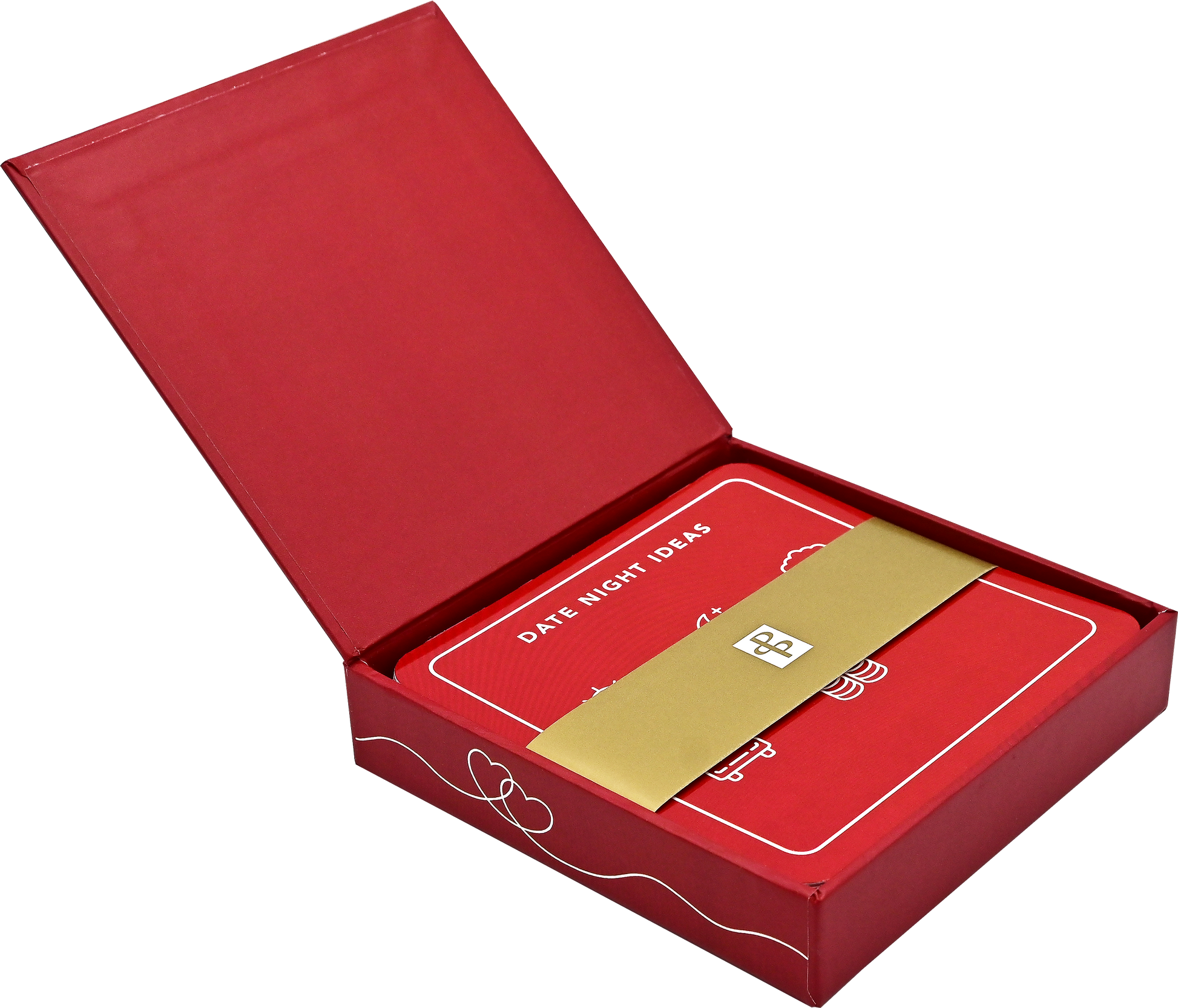 Whether you've just started dating or have been together for years, this scratch-off card deck for couples will add mystery, play, and spontaneity to Date Night! Build connection and memories while having fun together! Choose a card. Check the icons at the bottom of the card for clues about the date. A ''Helpful Hints'' card is included to explain what each icon means (examples: outdoors, reasonable $, snacks). Scratch off the card to reveal the date idea. (Use the included scratcher. )But no ''take backs''! Once you scratch off the card, you must do it! Boxed card set includes: 40 date idea scratch-off cards, 1 rules card, 1 icon hint card, and 2 plastic scratchers. Cards measure 4'' square. Attractively designed box -- red with gold foil accents -- is perfectly packaged for gift-giving. Sturdy box measures 4-1/4'' square x 7/8'' deep.