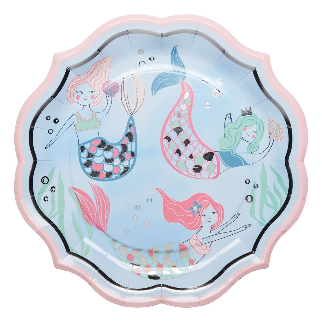 These stunning paper plates will make you want to host a party at the first chance you get! This silver ruffled edge plates show an enchanting mermaid design against a blue background! Add a touch of elegance to your holiday gatherings! Impress your guests with these perfect pieces. Your guests will not believe that these are paper plates! Pairs beautifully with our Bella plastic cutlery, matching napkins, paper baking cups, and party picks!