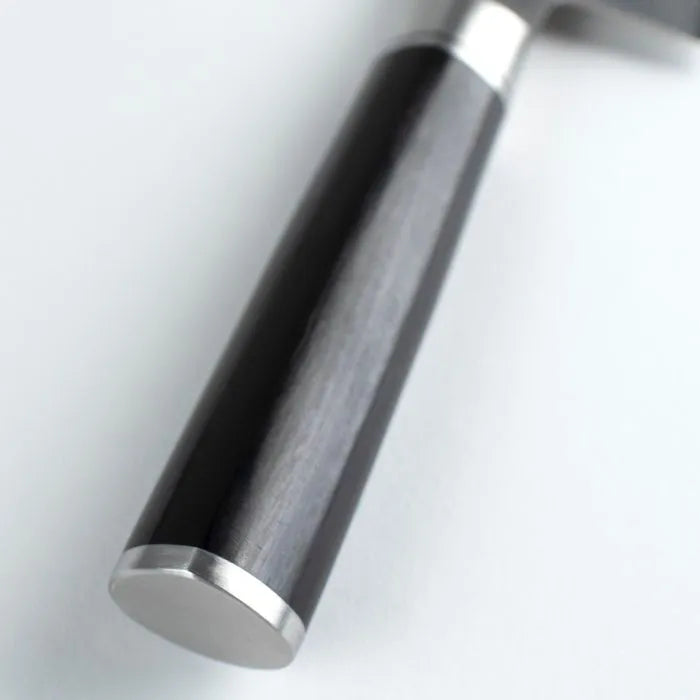 - D-shaped ebony-finished Pakkawood handles are comfortable for both left- and right-handed users; durable, beautiful, and won't harbor bacteria