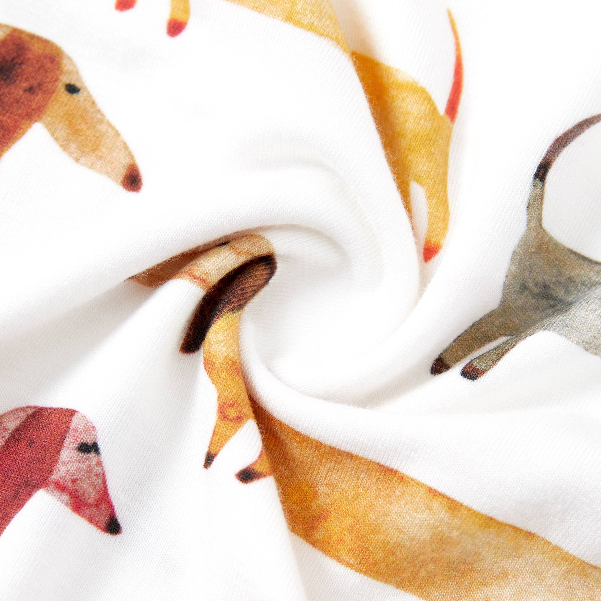 Product Introduction: Fun and vibrant matching family outfits with cartoon dog print, perfect for casual wear.