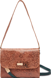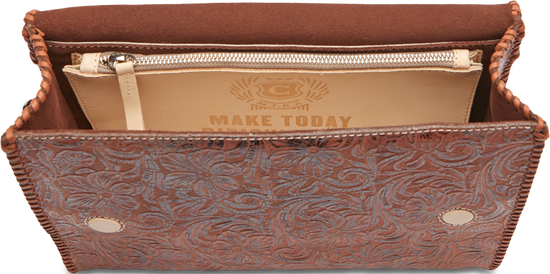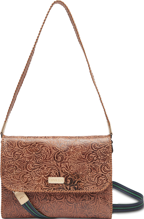 The Chrissy Crossbody features whipstitched leather trim and an open interior. This crossbody comes with a detachable leather strap and adjustable webbing crossbody strap, and can easily be converted into a clutch! Keep things organized with the interior zipper pocket and credit card pocket.