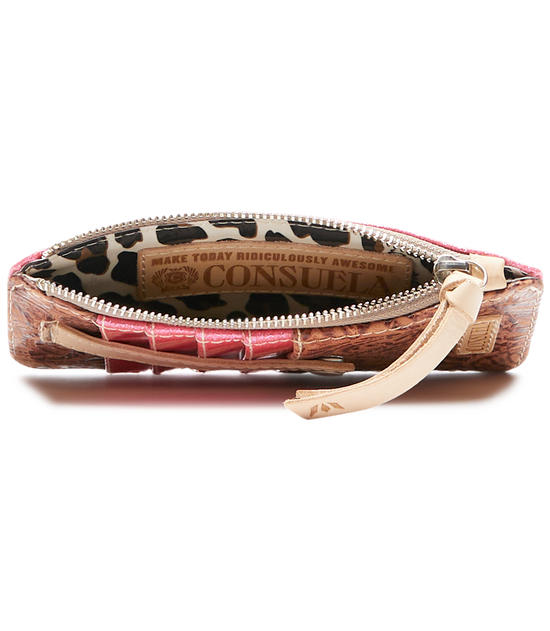 Keeping things light and easy, the card organizer is perfect for credit cards and folded bills. This wallet’s snap-closure and zipper compartment provides security while you take on the day.
