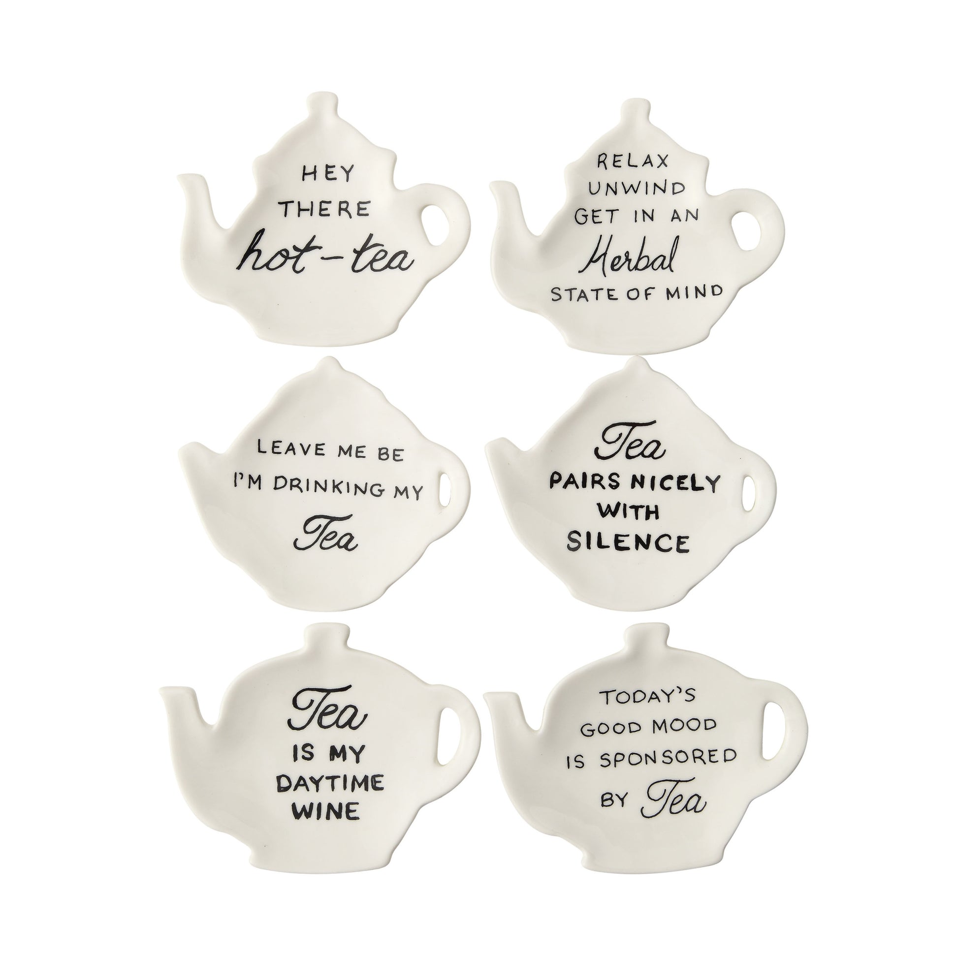 STONEWARE TEAPOT DISH WITH SAYING, 6 STYLES