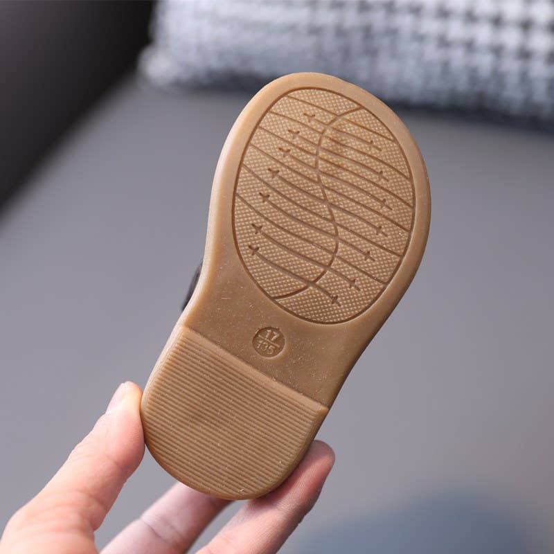 * Cozy and comfy * Antiskid and durable * Upper: Synthetic leather * Lining: Synthetic leather * Outer Sole: PVC * Washing is not recommended * Imported Attention (Please refer to the PatPat red size sticker for the actual size of the shoes.)