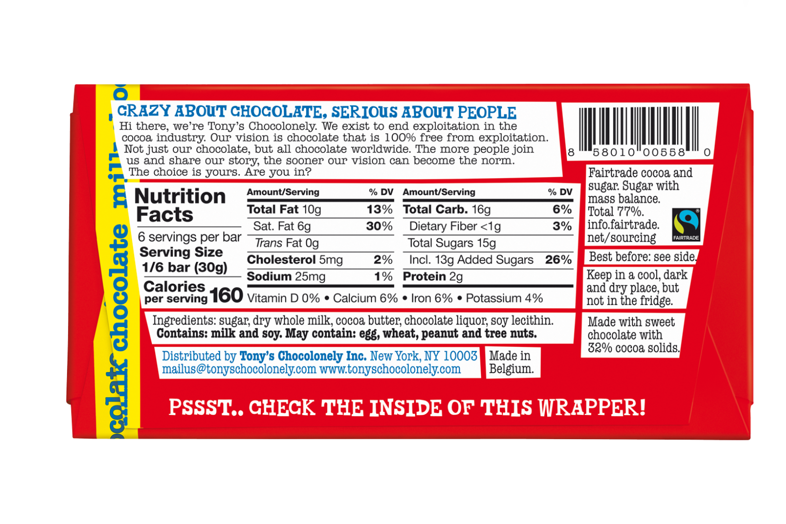 TONY'S milk chocolate 32%, 6.35oz, 1 bar