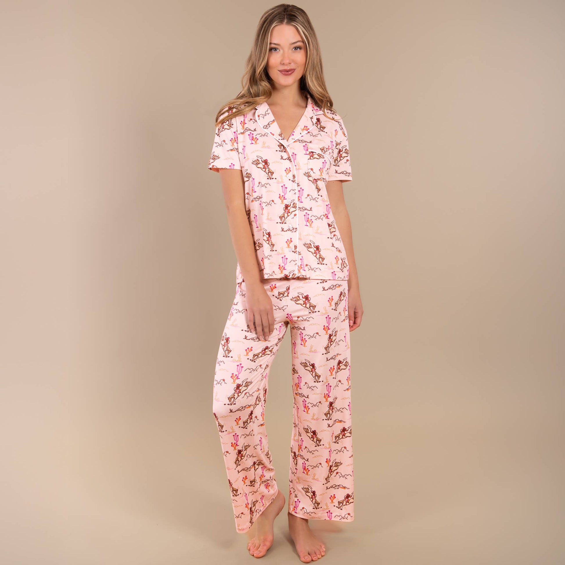 Vintage Cowgirl Pajama Pants | Retro Pink Western PJ Bottoms: L
